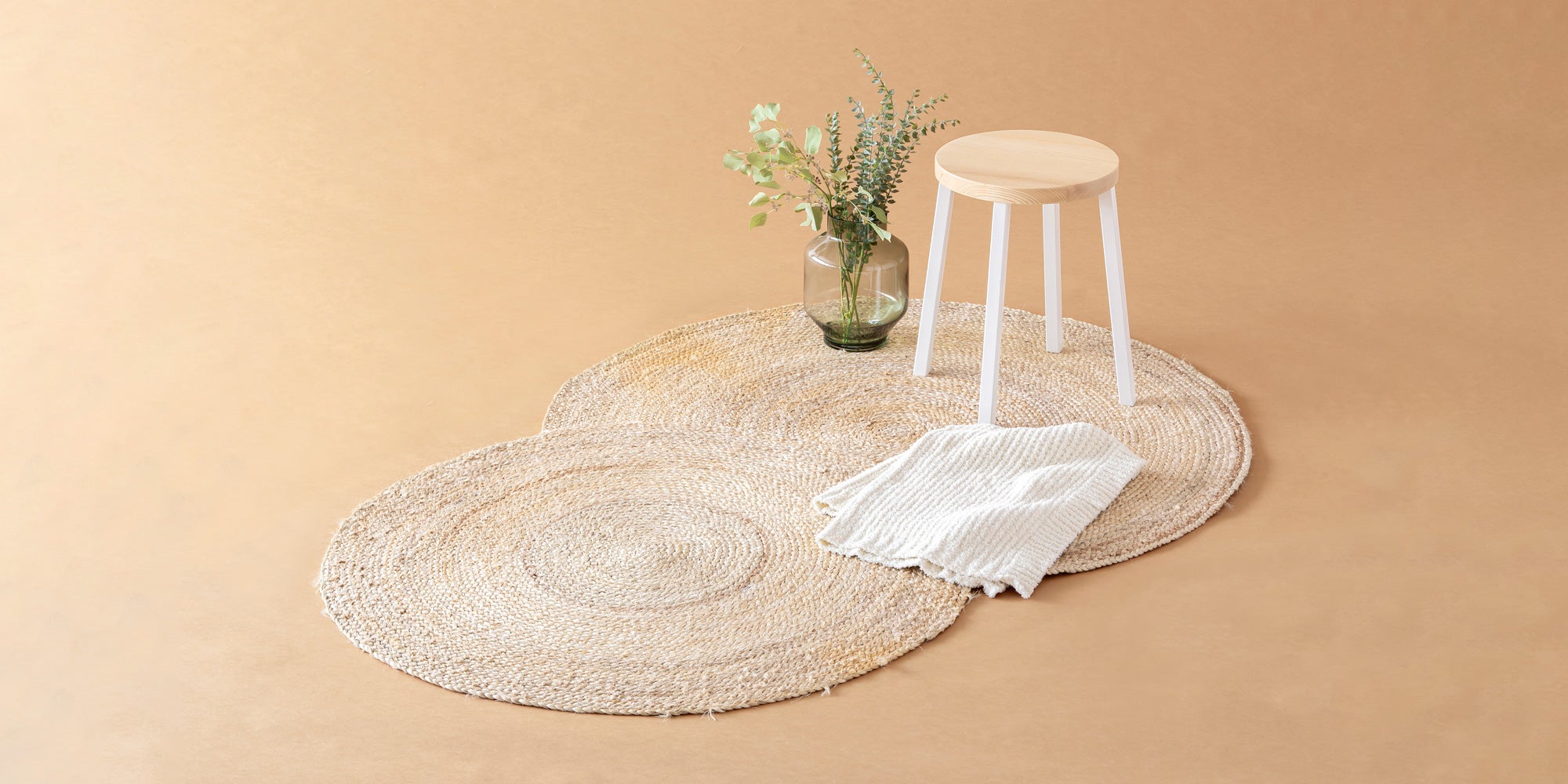 あなたの部屋を少し他とは違うイメージにしたいなら、ウールラグの上に独特な質感をかなでるジュート素材を重ねて、コンビネーションを楽しんでみて。異素材と色が組み合わさり、洗練されたスタイルが簡単に作れます。