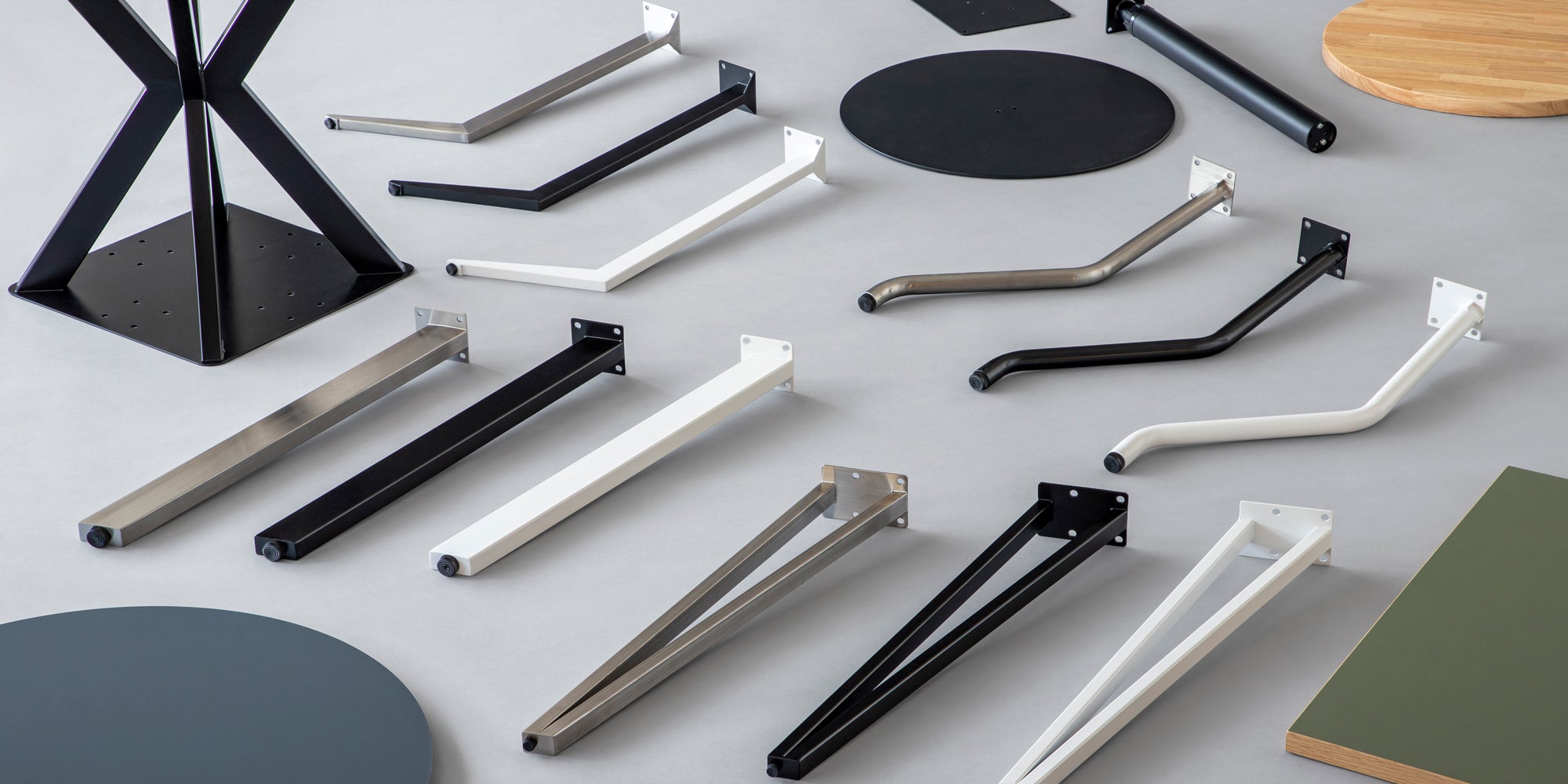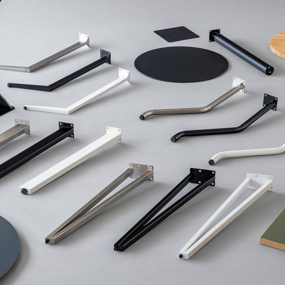 すっと細く、軽やかに見せたい。目を引くような存在感を持たせたい。空間をきりっと引き締めたい。KANADEMONO の4本脚には、そんな好みの違いに応える、表情豊かなバリエーションが揃っています。