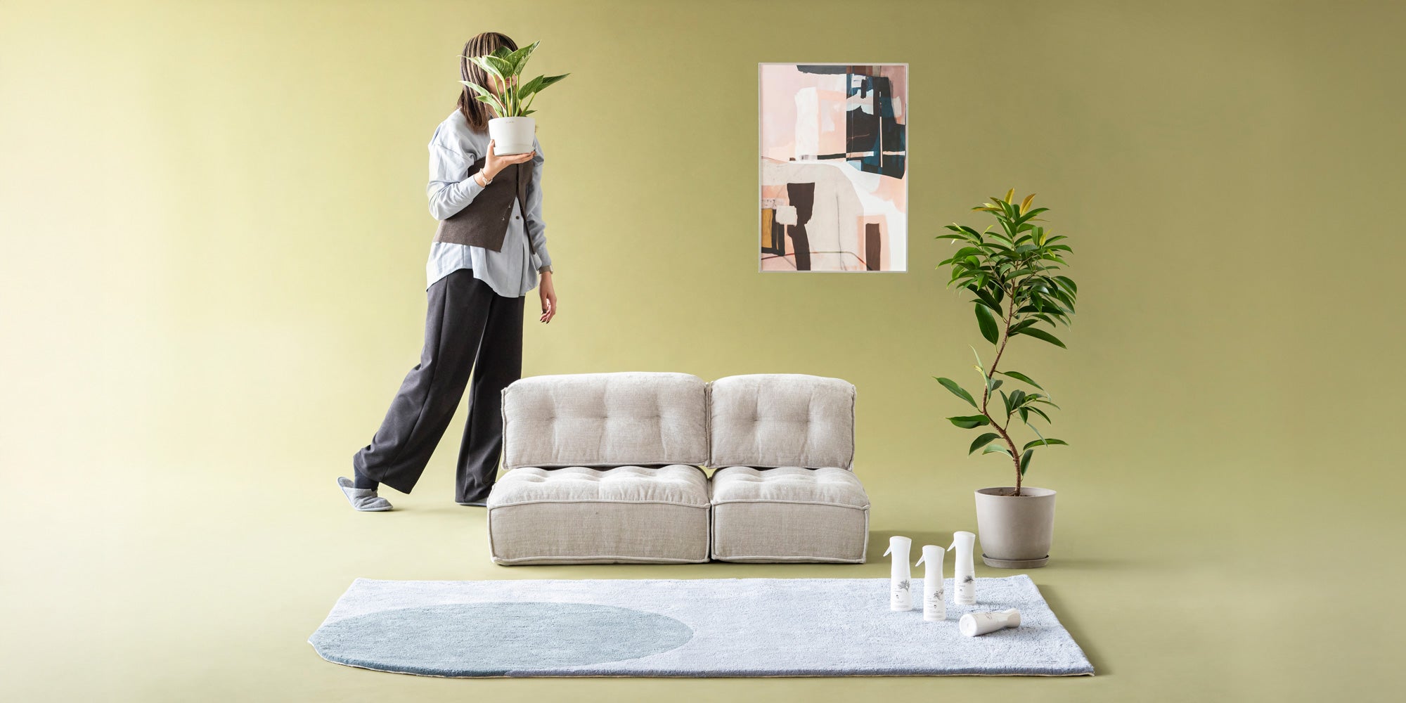 スタイルごとに世界観を持つファブリックミストと、空間の印象を決めるアートを組み合わせることで、視覚と嗅覚の両方から、そのスタイルらしさを楽しめるのもおすすめポイント。
